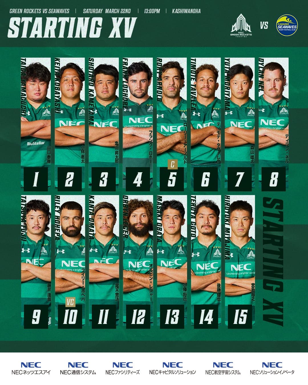 大会結果配信表 NECグリーンロケッツ東葛 vs 日本製鉄釜石シーウェイブス(NTTジャパンラグビー リーグワン 2025-26 ディビジョン2:2026年03月22日)
