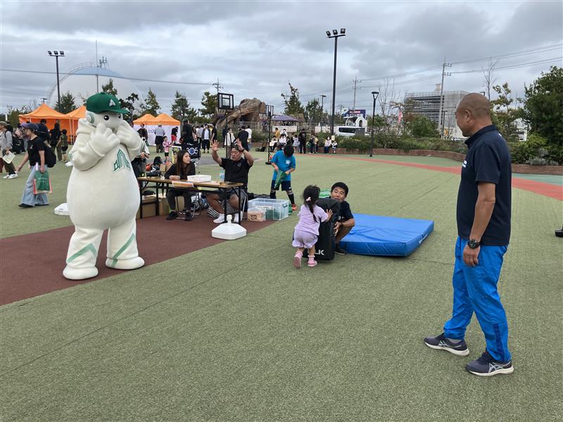 2025年10月13日(月)、セブンパークアリオ柏にて開催された「スポーツドリーム柏」に参加しました。イベントには、NECグリーンロケッツ東葛のマスコットキャラクターの「キャプテンスティーム」が参加してくれました。 柏ラグビースクール、AZ-COM丸和MOMOTARO'Sと一緒に来場者の皆様にラグビー体験を楽しんでいただきました。1日中行列で賑わっておりました!柏ラグビースクールの皆様、サポートいただきありがとうございました!