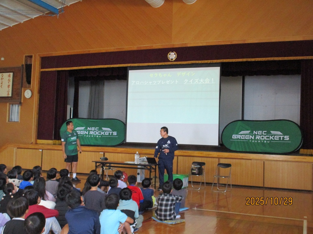 10月29日(水)、NECグリーンロケッツ東葛のホストタウンである流山市の流山市立鰭ヶ崎小学校で、小学校4年生を対象に食育授業を実施しました。