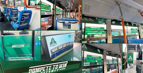 本契約の締結に伴い、東武バスセントラル株式会社様によってNECグリーンロケッツ東葛デザインオリジナルラッピングバスが運行いたします。また、バス車両内もNECグリーンロケッツ東葛仕様に装飾が施されます。
