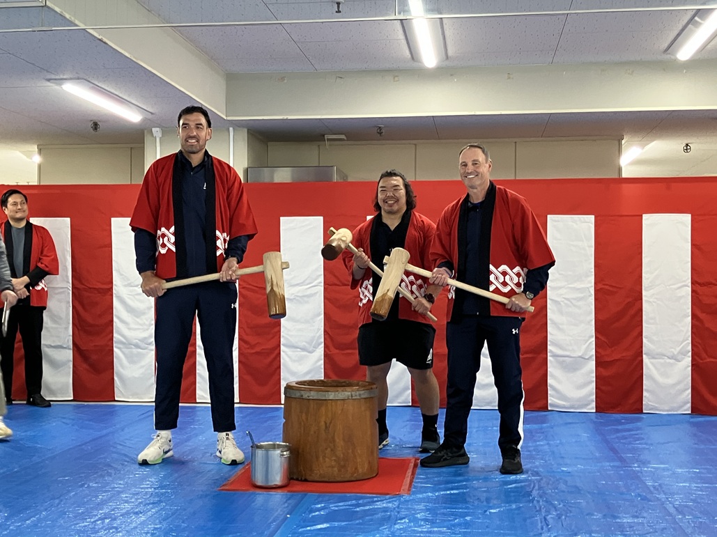 2026年1月7日(水)、NEC我孫子事業場で開催された新春餅つき大会に参加しました。グレッグ・クーパーHC、ローリー・アーノルド選手、瀧澤直選手がついたお餅を社員の皆さまと食べて、今週末の試合に向けてエネルギーを蓄えました!短い時間でしたが、応援のお声掛けもいただき、ありがとうございました!