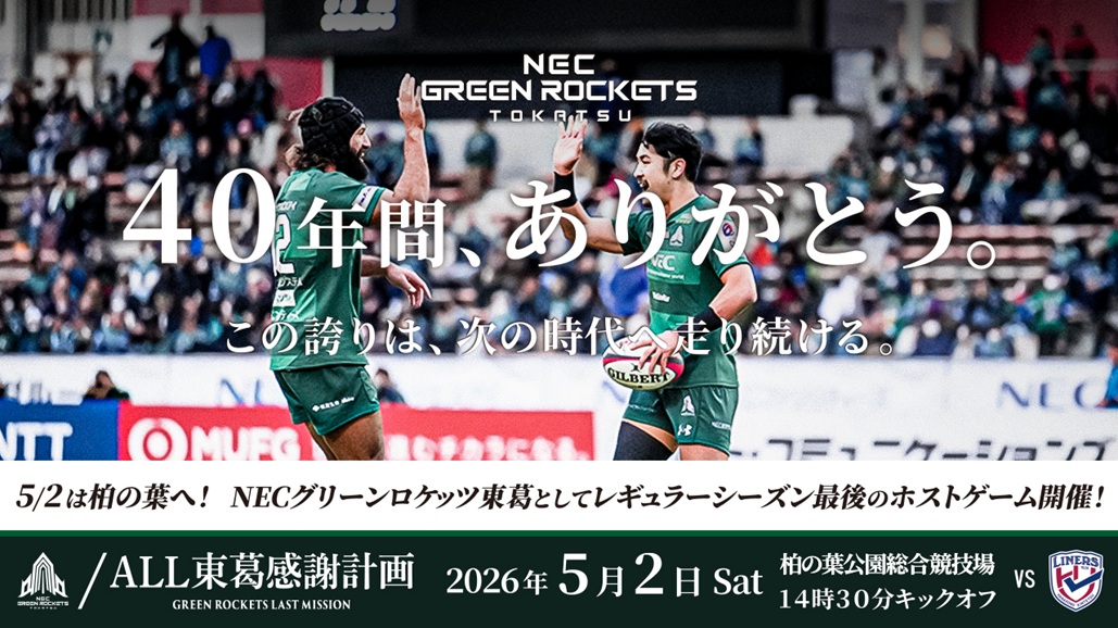 5月2日(土)は、「NECグリーンロケッツ東葛」として戦うレギュラーシーズン最後のホストゲームです。