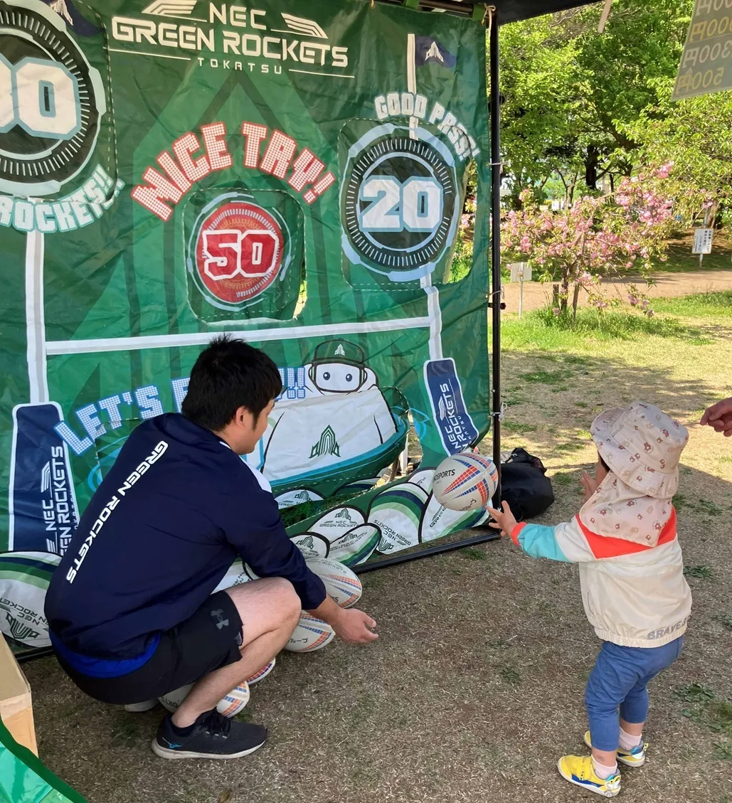 4月12日(日)、柏市 地域防災まつりでラグビーのパス体験会を開催しました。柏市は各地に防災備蓄倉庫を配置されているとのこと、ラグビーを通じて地域の安心安全に貢献できる貴重な機会を頂き、ありがとうございました!